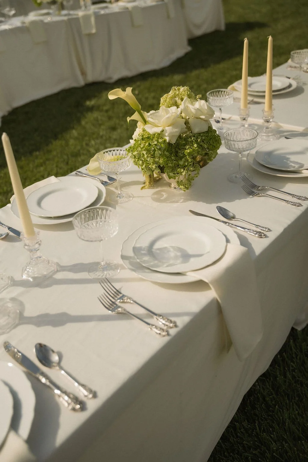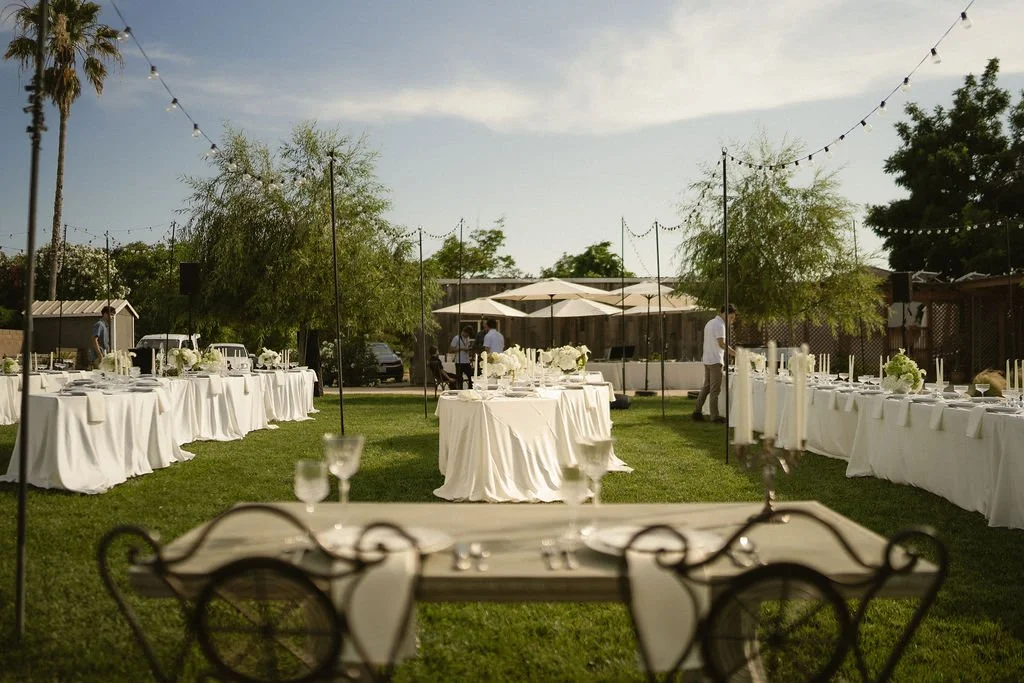 Set entirely on the lawn, both the ceremony and reception unfolded beneath open skies, allowing the natural beauty of the estate to take center stage. Guests were welcomed into a serene, garden-like setting where the pace slowed and the celebration felt intimate and intentional.